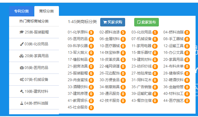 3.您也可以直接進(jìn)入專利商城或者商標(biāo)商城,直接在商城里通過關(guān)鍵字搜索,或者通過類別查找,亦或者直接瀏覽平臺(tái)推薦,找到合適自己的專利商標(biāo);