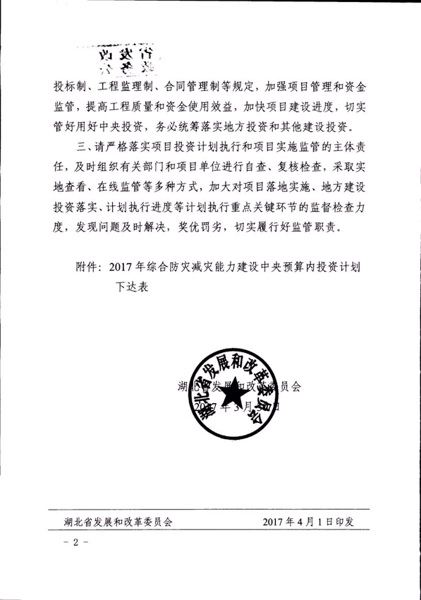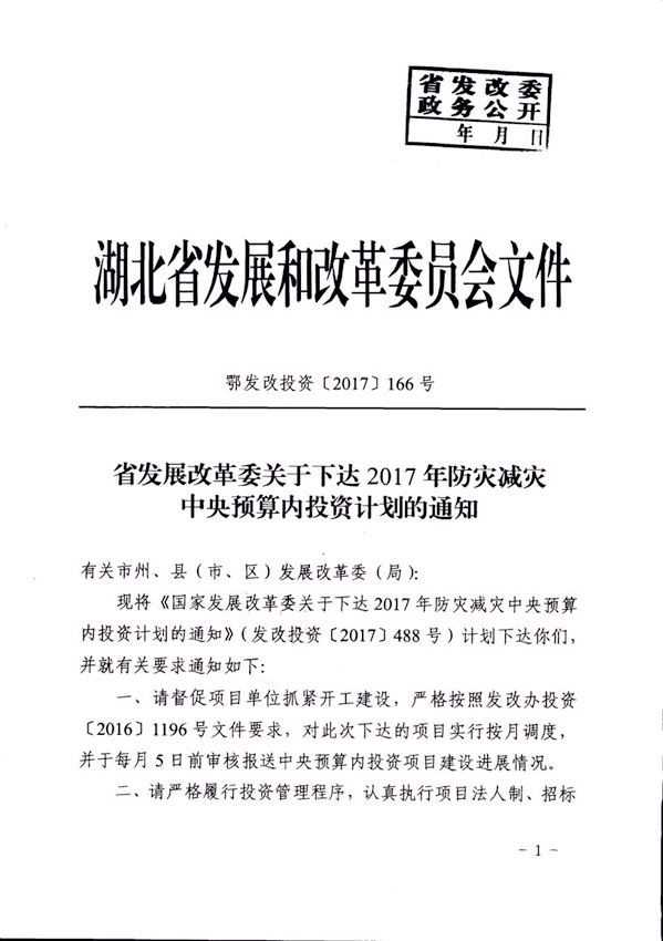 省發(fā)改委關(guān)于下達2017年防災(zāi)減災(zāi)中央預(yù)算內(nèi)投資計劃的通知