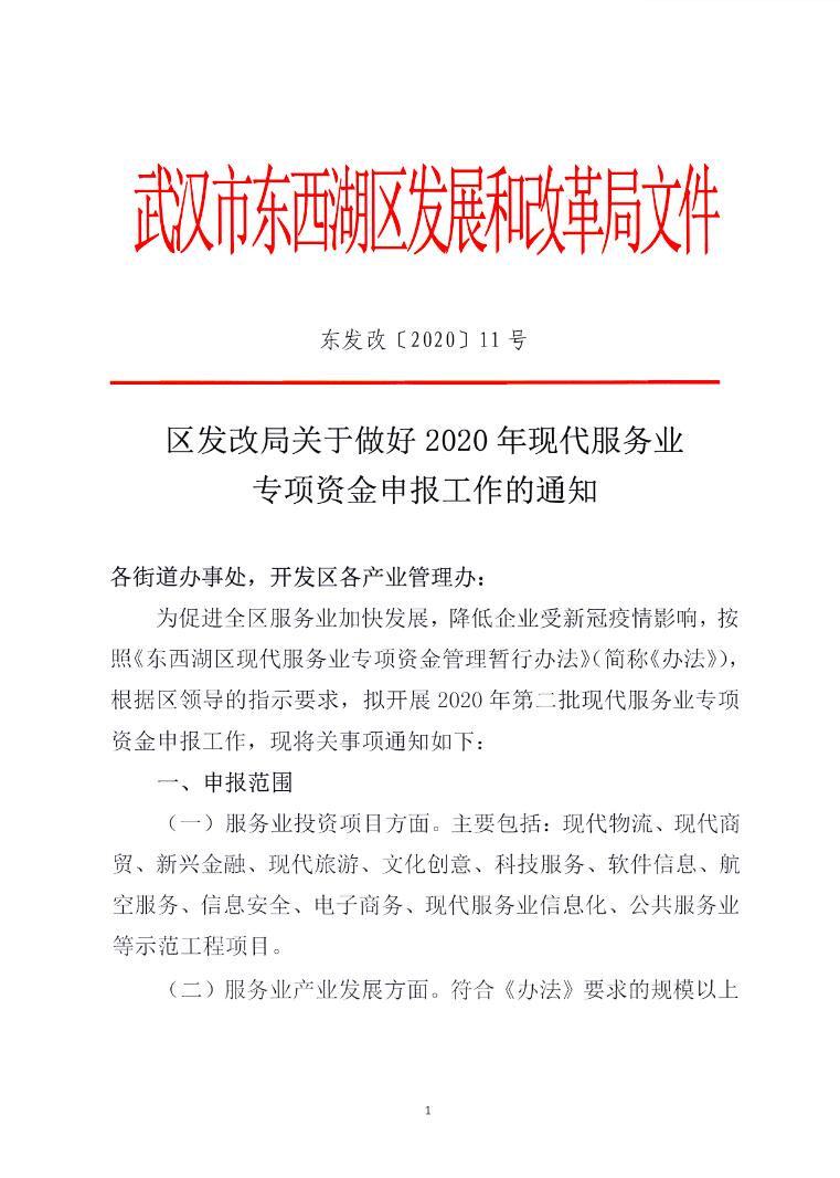區(qū)發(fā)改局關(guān)于做好2020年現(xiàn)代服務(wù)業(yè)專(zhuān)項(xiàng)資金申報(bào)工作的通知