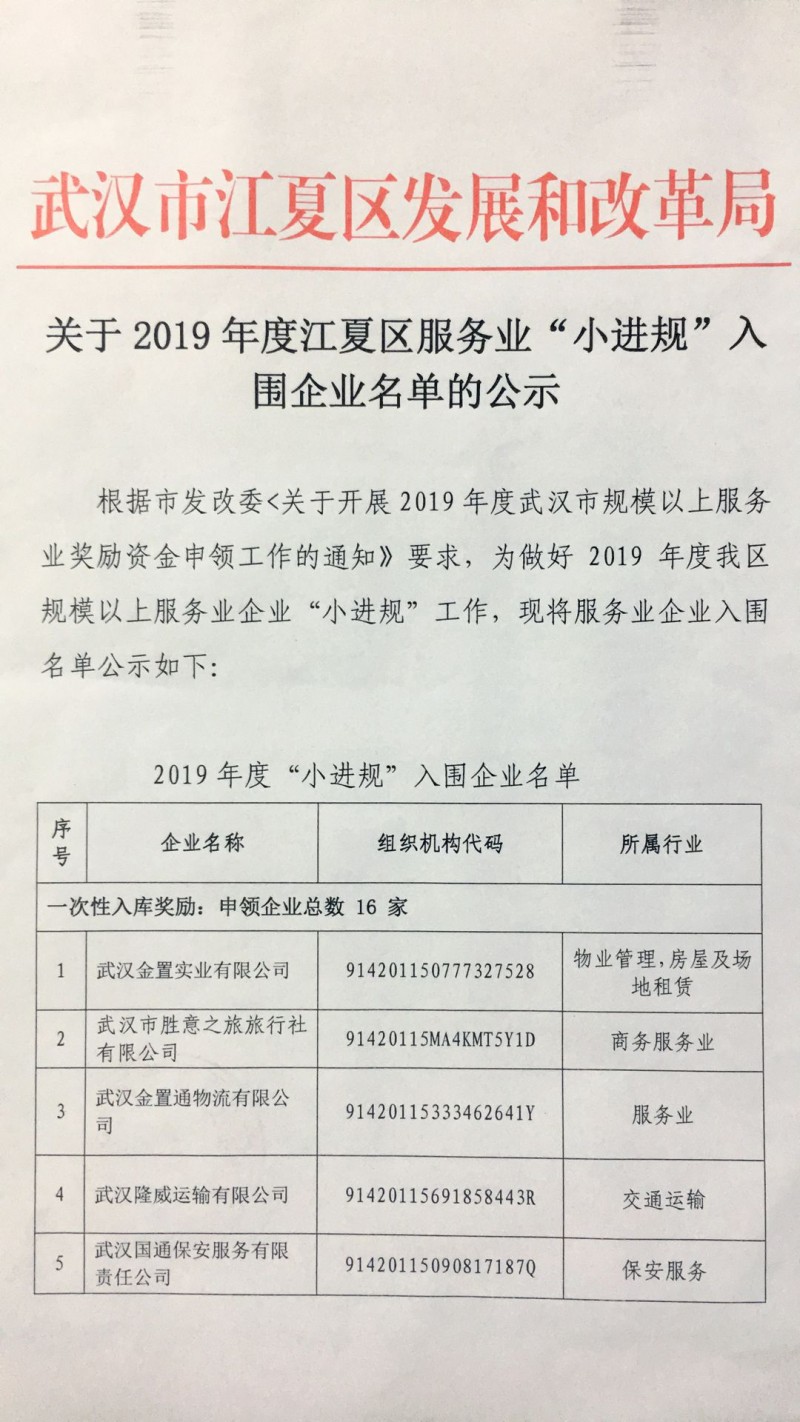 關(guān)于2019年度江夏區(qū)服務(wù)業(yè)“小進(jìn)規(guī)”入圍企業(yè)名單的公式
